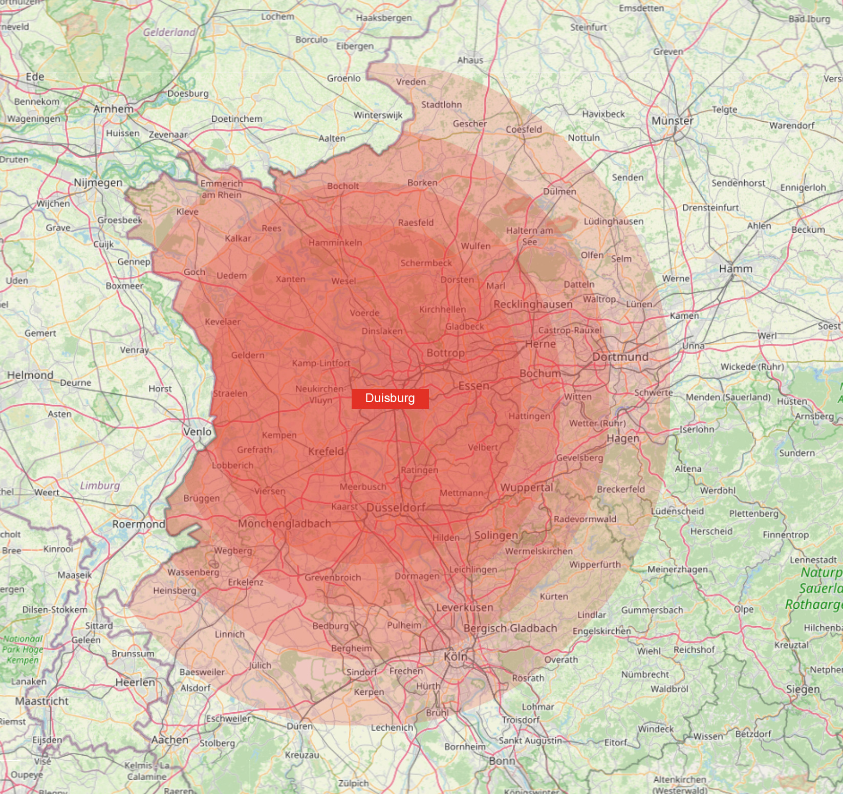 Unser Liefergebiet erstreckt sich über rund 120 km um Duisburg – und das bedeutet, dass wir mehr als 15 Millionen Menschen erreichen!